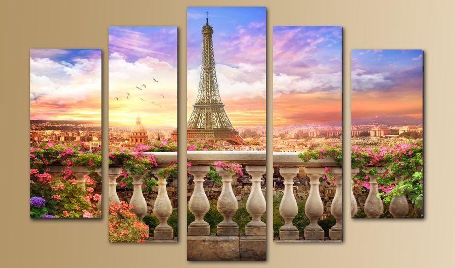 Картина изготовлена из искусственного холста, натянутого на деревянный подрамник (МДФ). Искусственный холст представляет собой синтетический материал (ПВХ), подобный натяжному потолку.Картина продается в готовом виде, Вам остается только повесить её на стену. Пятисоставная модульная картина.