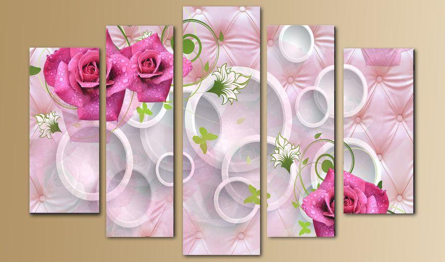 Картина изготовлена из искусственного холста, натянутого на деревянный подрамник (МДФ). Искусственный холст представляет собой синтетический материал (ПВХ), подобный натяжному потолку.Картина продается в готовом виде, Вам остается только повесить её на стену. Пятисоставная модульная картина.