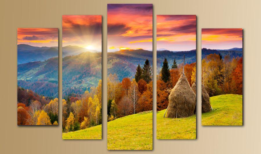 Картина изготовлена из искусственного холста, натянутого на деревянный подрамник (МДФ). Искусственный холст представляет собой синтетический материал (ПВХ), подобный натяжному потолку.Картина продается в готовом виде, Вам остается только повесить её на стену. Пятисоставная модульная картина.